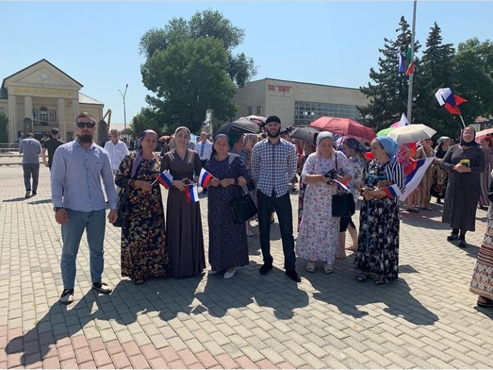 Коллектив МБОУ «СОШ №2 с. Катар-Юрт» на торжественном мероприятии, посвященном Дню российского флага.