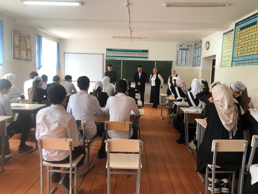 Заместитель имама села Катар-Юрт ШахбиевАлха провел беседу с обучающимися 9-11 классов по профилактике терроризма и экстремизма в молодежной среде.
