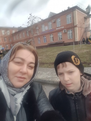 Директор школы Астамирова Х.А. встречает участника проекта молодежных инноваций.