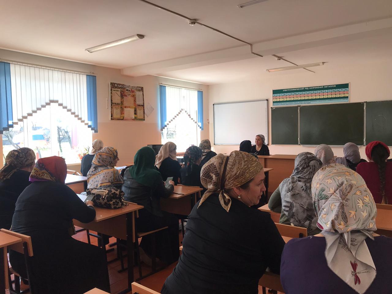 24.03.2020Директор МБОУ "СОШ2 с. Катар-Юрт" Х.А.Астамирова проводит совещание с педагогическим коллективом школы о мерах предосторожности против распространения короновирусной инфекции