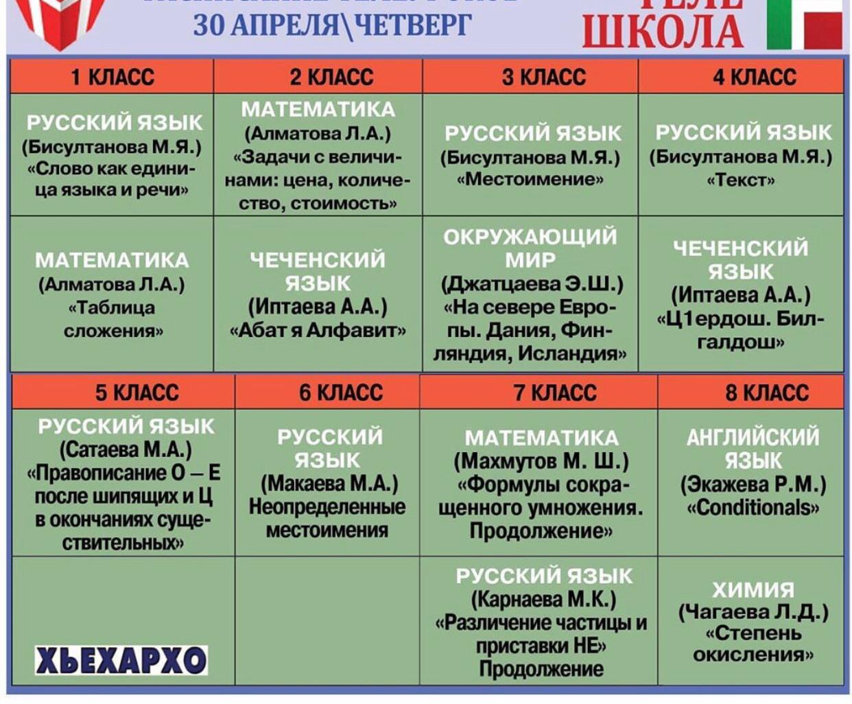 Расписание телеуроков на 30 апреля.