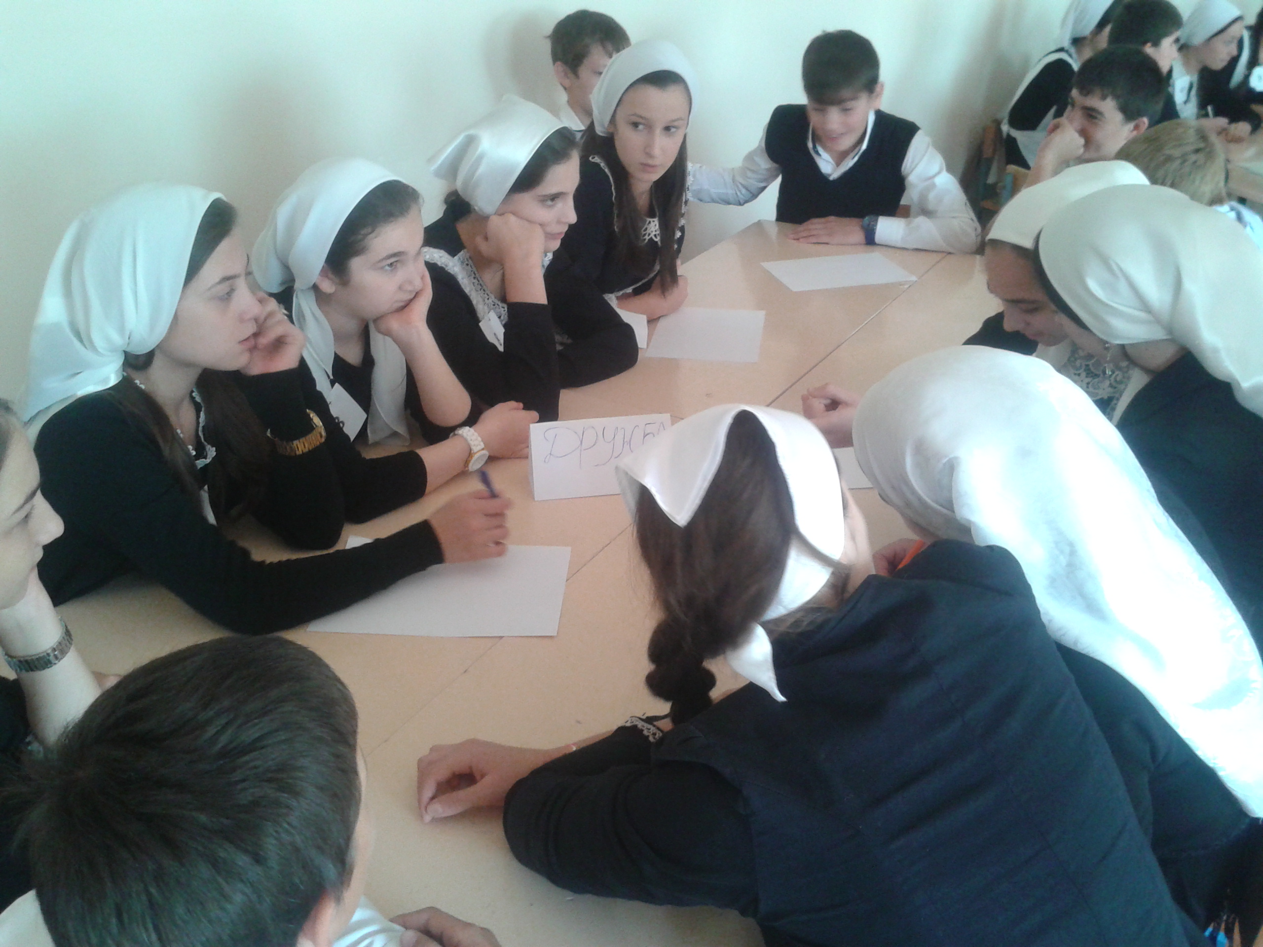 27.09.2014Сегодня в нашей школе мы провели интеллектуальную игру «Эффект Грозный» среди учащихся 8,9,10 классов. Игра была направлена на выявление скрытого лидера среди учащихся. Психологом школы Цацаевой М. был проведен мониторинг по основным направлениям развития личности .По проведенному мониторингу лидером стал ученик 9 «А» класса-Джабраилов Адрохман, ученица 8 «Б» класса –Мукаева Милана .