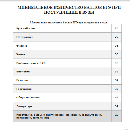 МИНИМАЛЬНОЕ КОЛИЧЕСТВО БАЛЛОВ ЕГЭ ПРИ ПОСТУПЛЕНИИ В ВУЗЫ