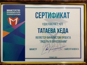 Заместитель директора по УВР Татаева Хеда Сулеймановна стала финалистом проекта "Лидеры в образовании"!. Поздравляем и желаем дальнейших успехов в профессиональной деятельности!