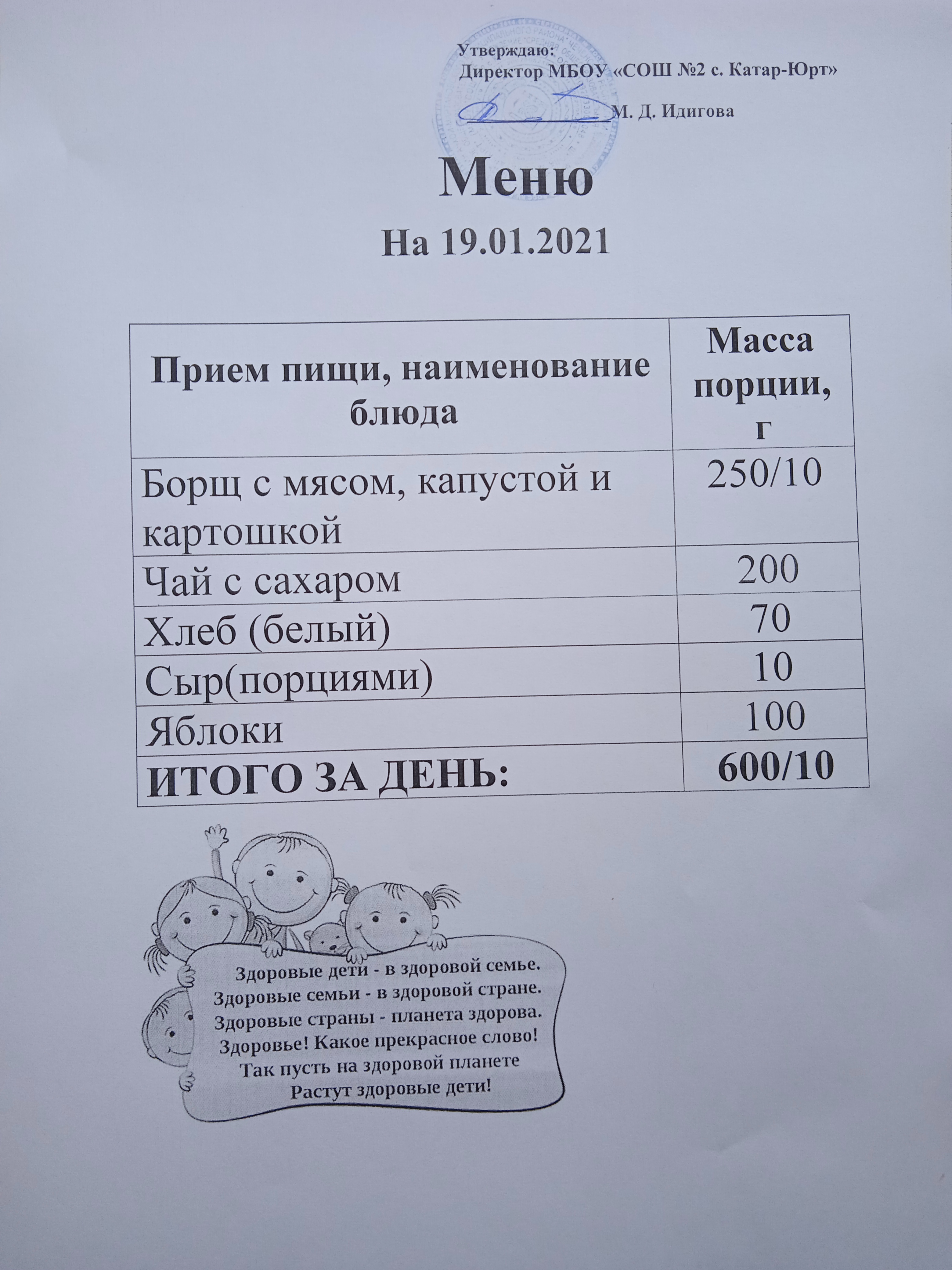 Меню горячего питания