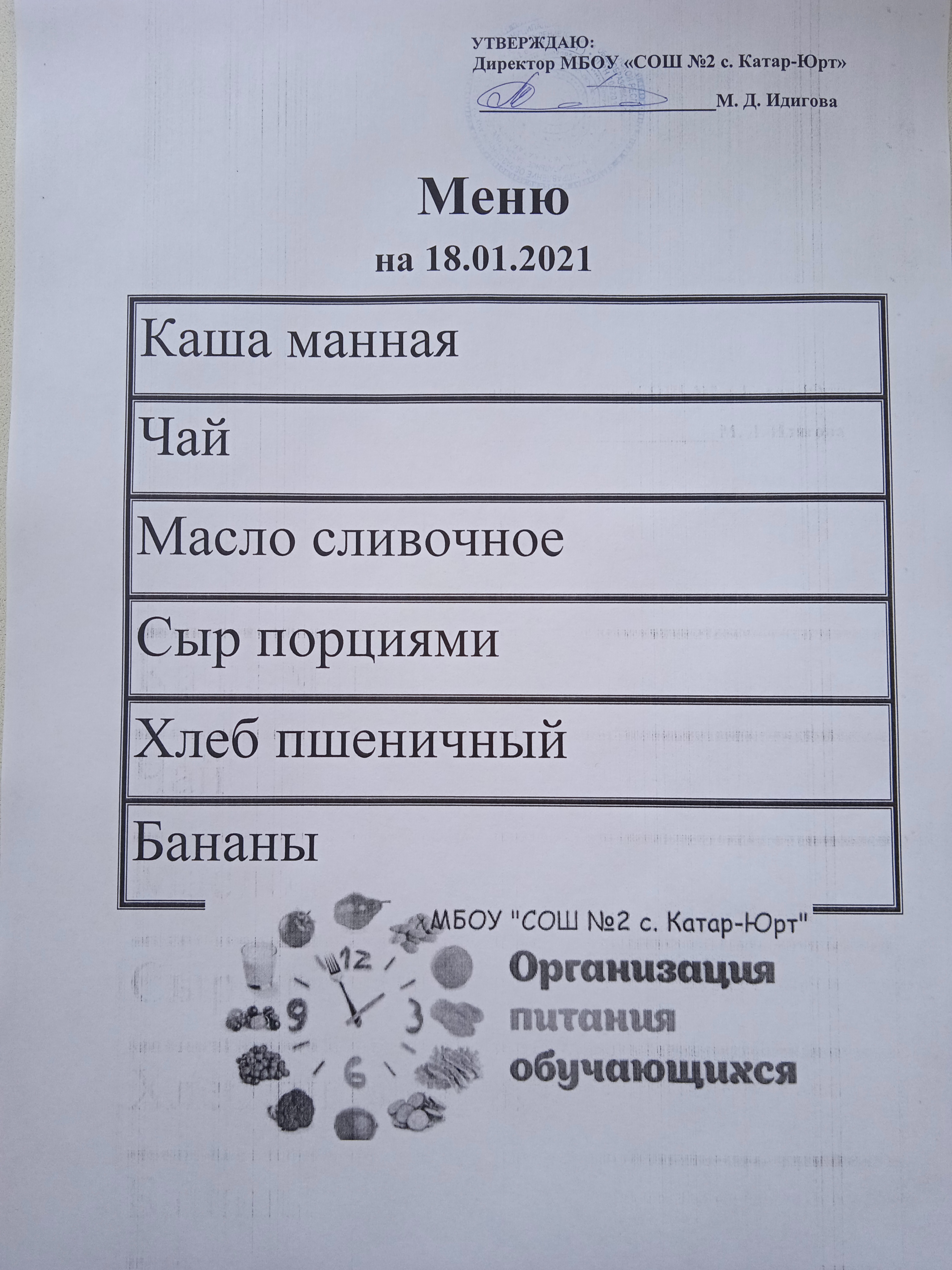 Меню горячего питания
