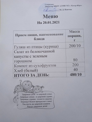 Меню горячего питания