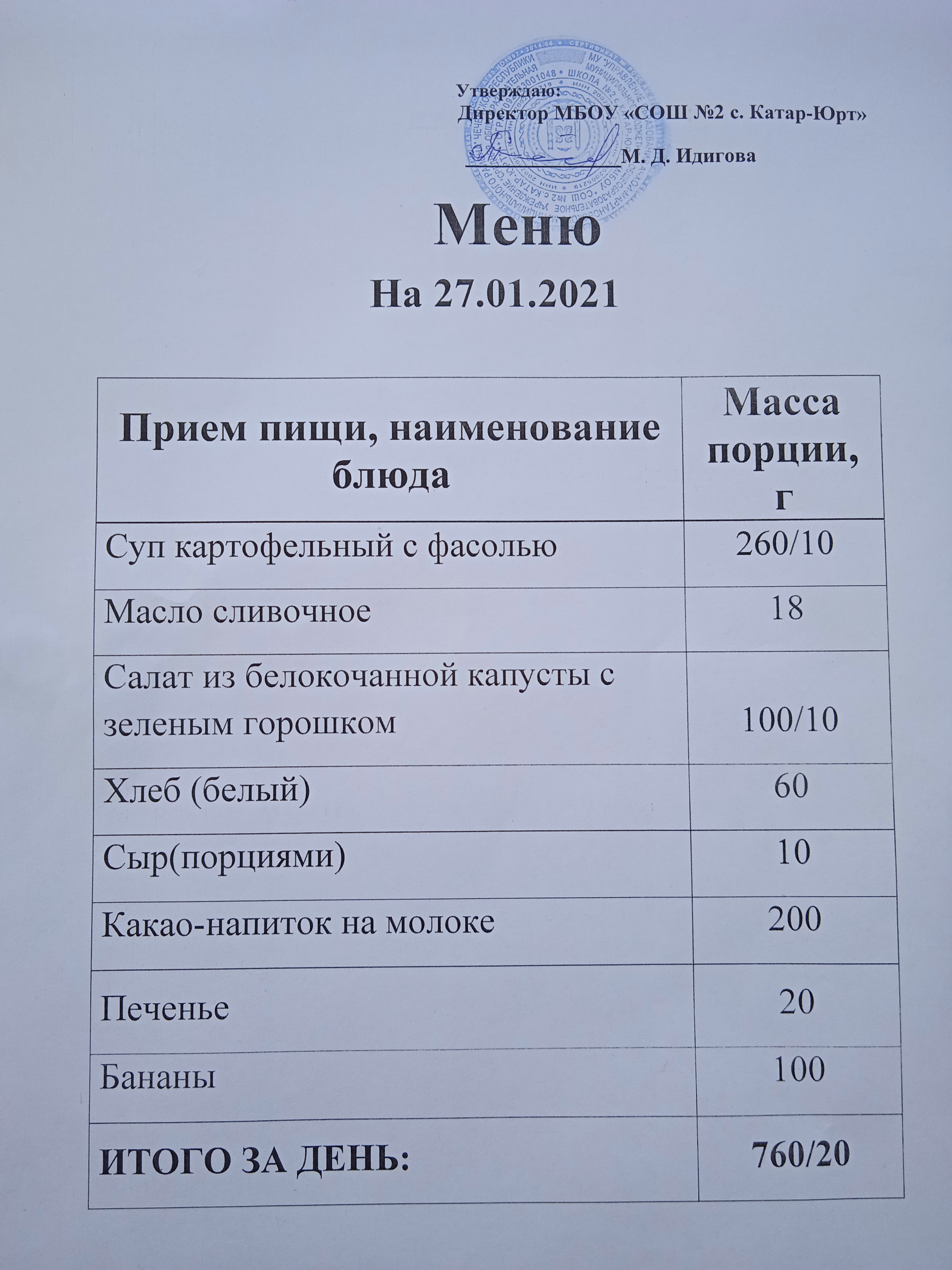 Меню горячего питания