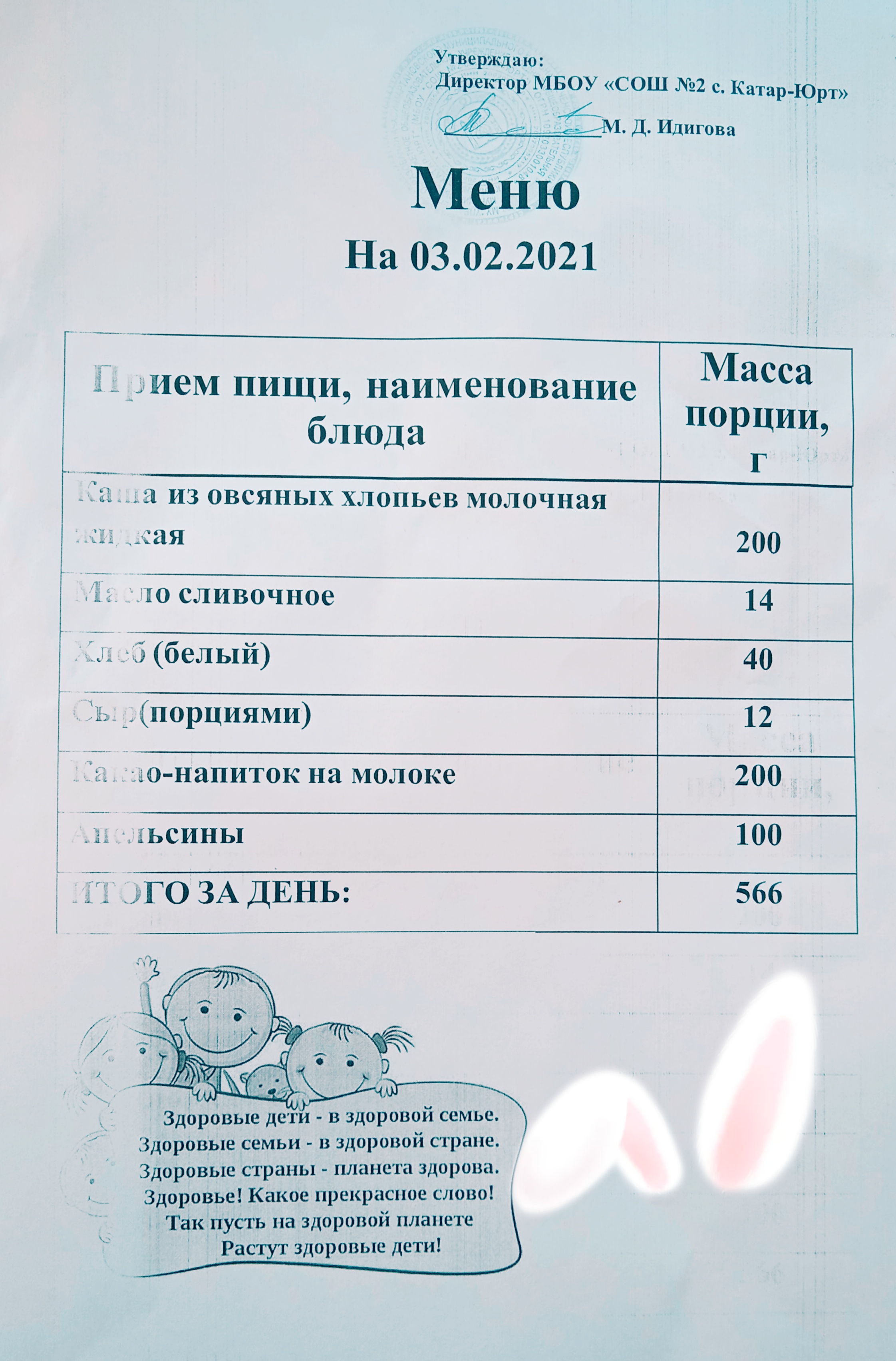Меню горячего питания