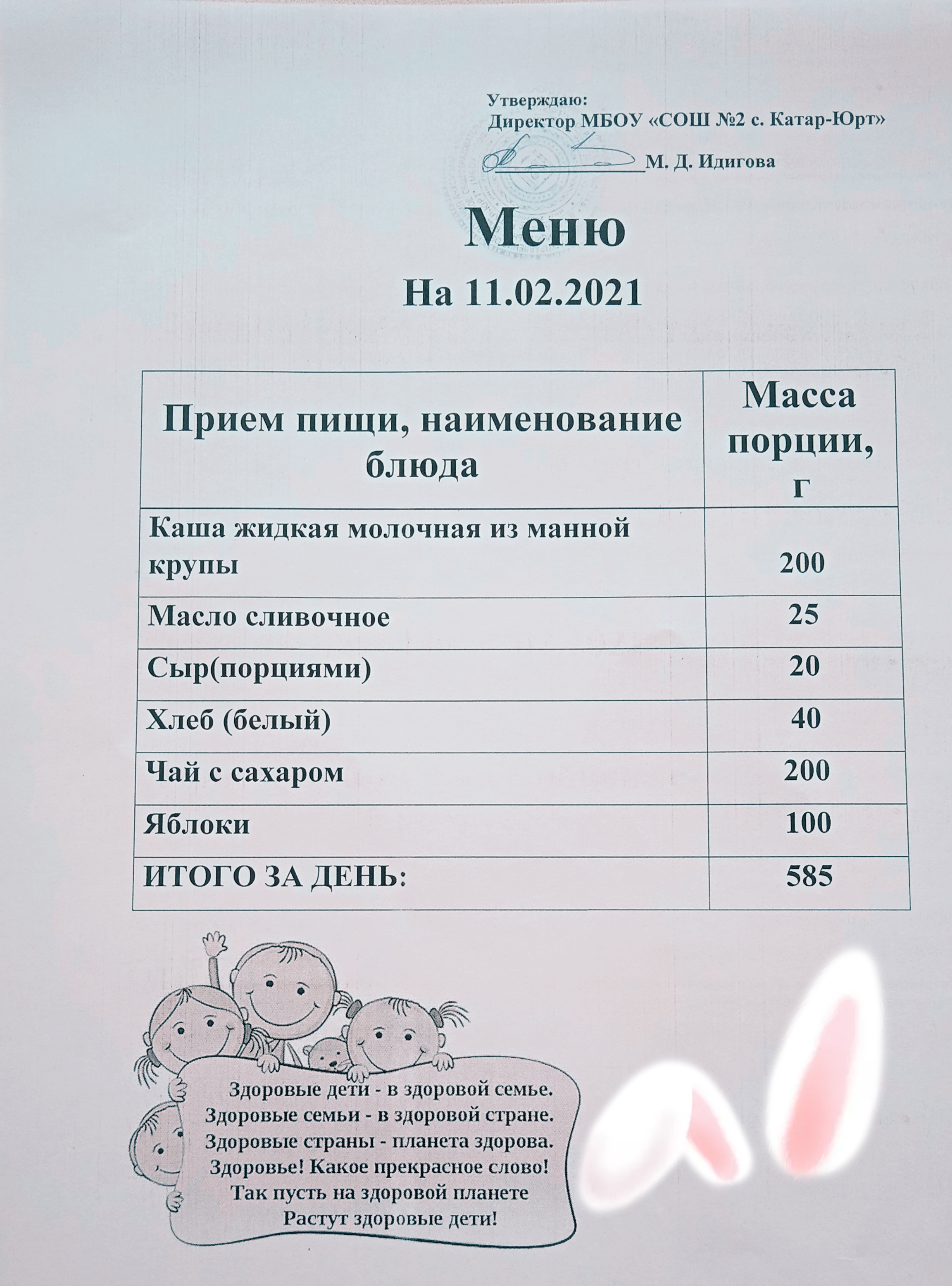 Меню горячего питания