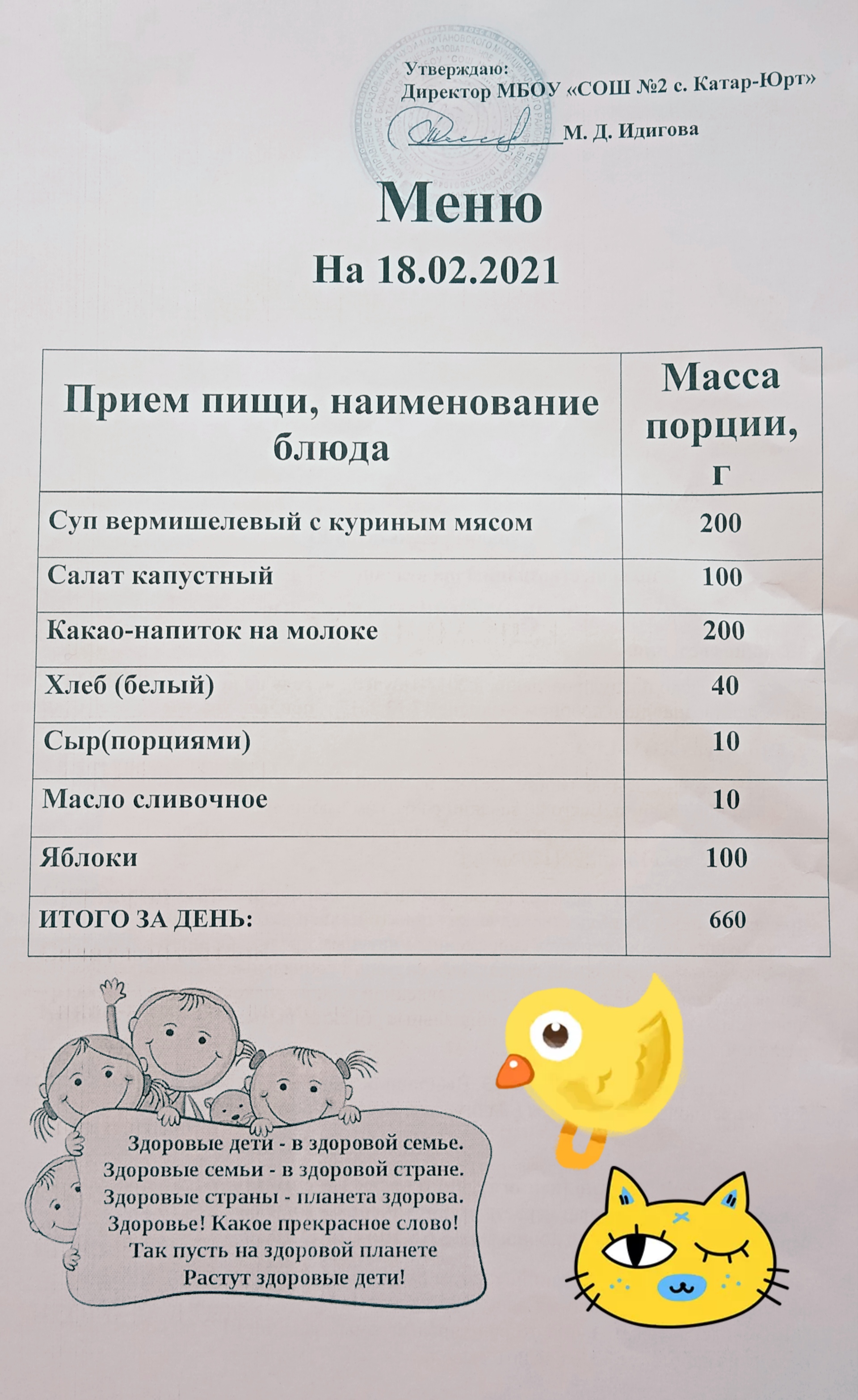 Меню горячего питания