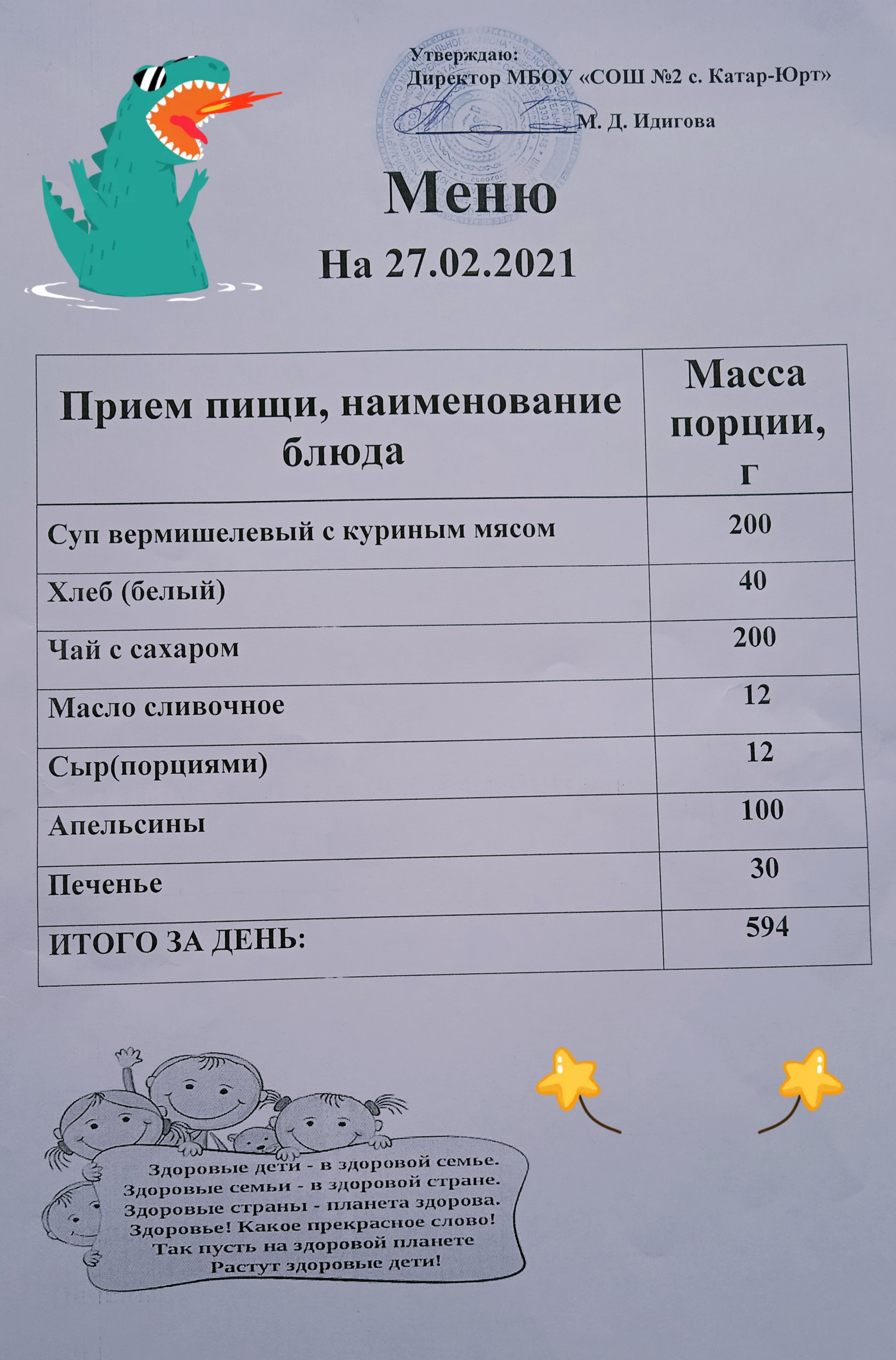 Меню горячего питания