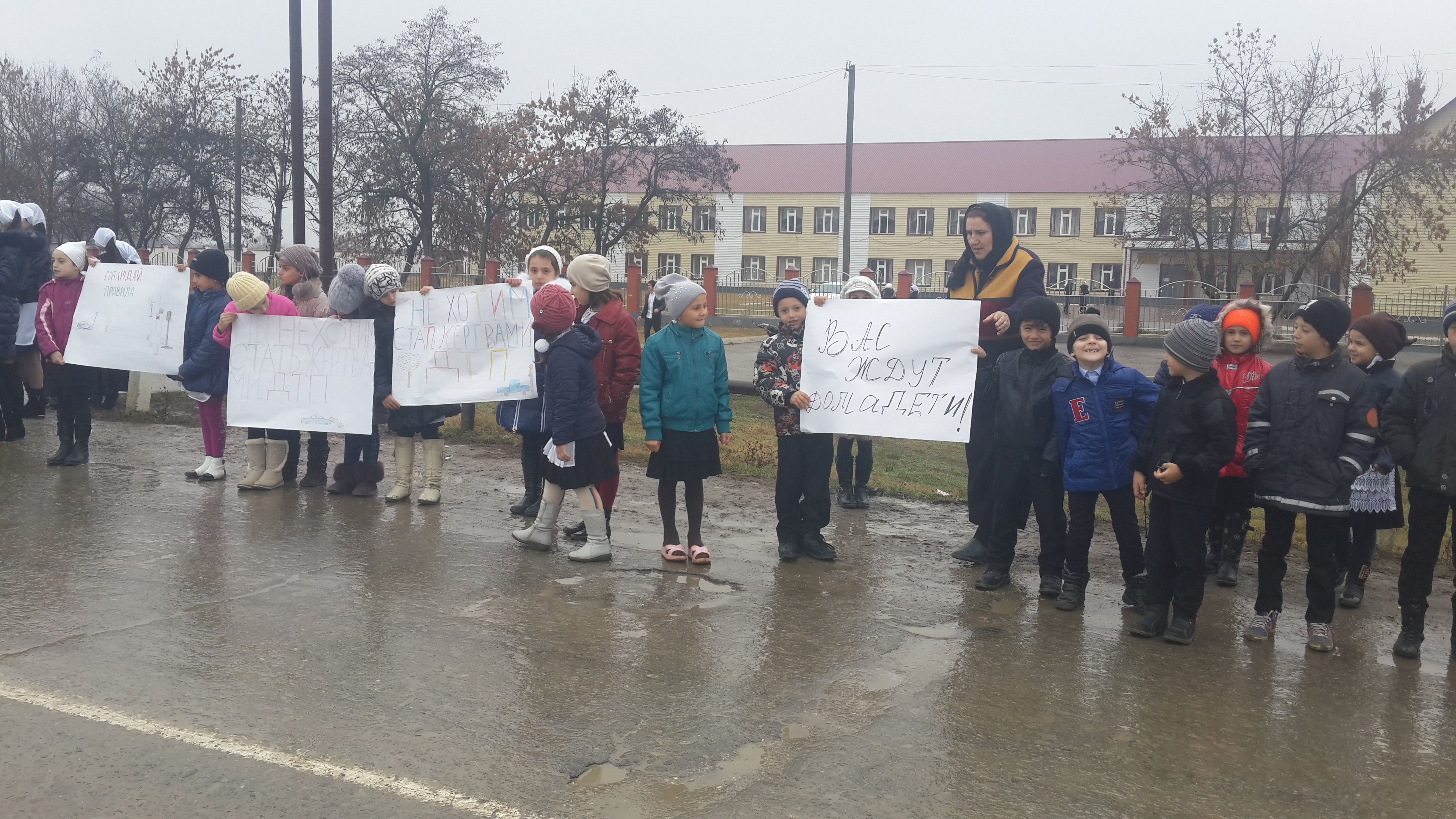 Учащиеся хорошо все это понимают ,поэтому несмотря на холодную изморось дружно вышли на проезжую дорогу и стали там живым коридором, надеясь призвать водителей к осторожности и бдительности .