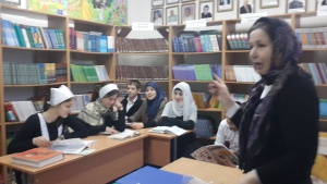 В 7-8 классах библиотекарем школы была проведена тематическая беседа: «За мир на Кавказе».