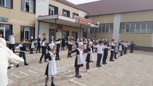 Учитель физической культуры И.В.Бачаев проводит утреннюю зарядку с обучающимися начальных классов.