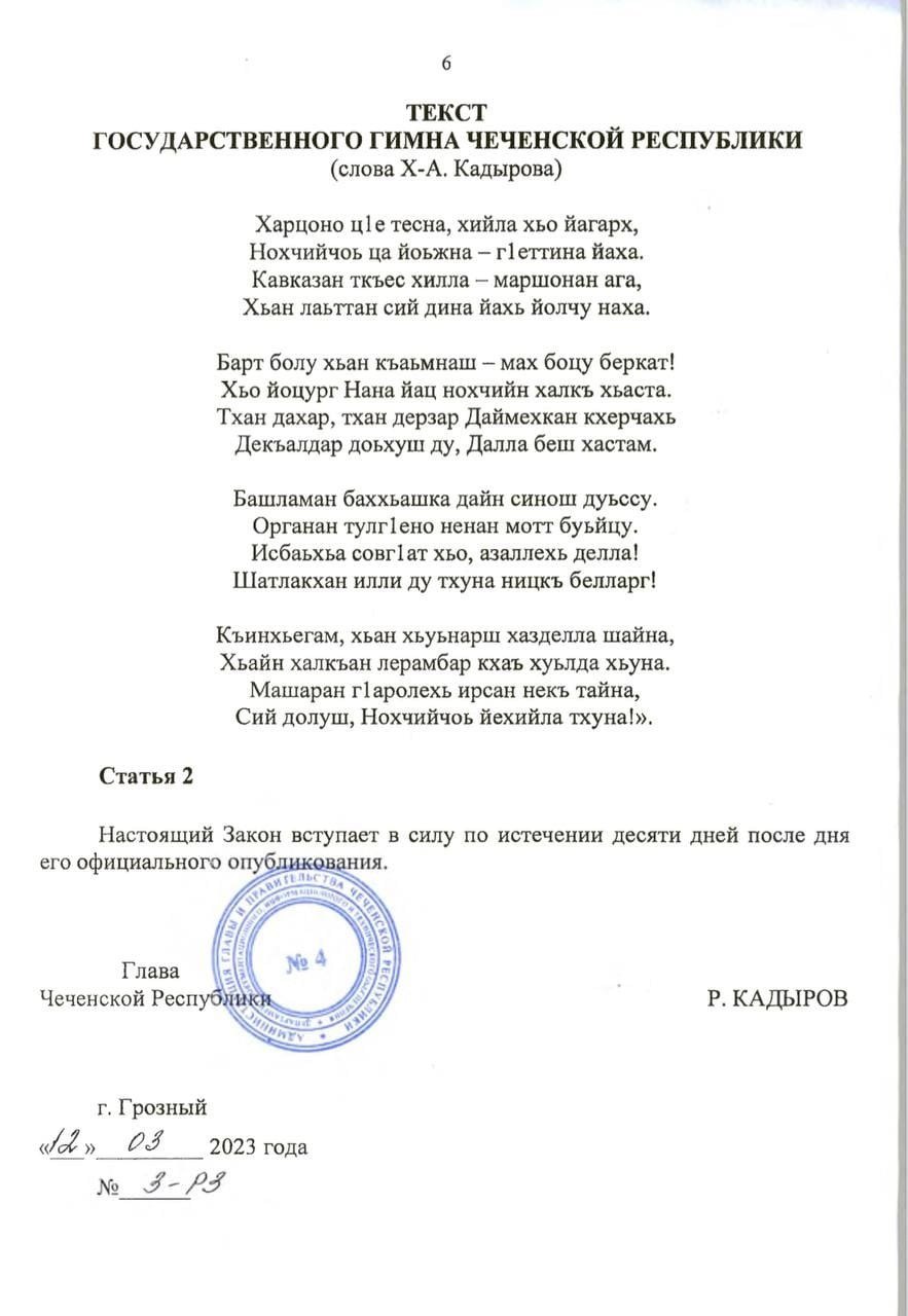 ТЕКСТ ГОСУДАРСТВЕННОГО ГИМНА ЧЕЧЕНСКОЙ РЕСПУБЛИКИ(слова Х-А. Кадырова).