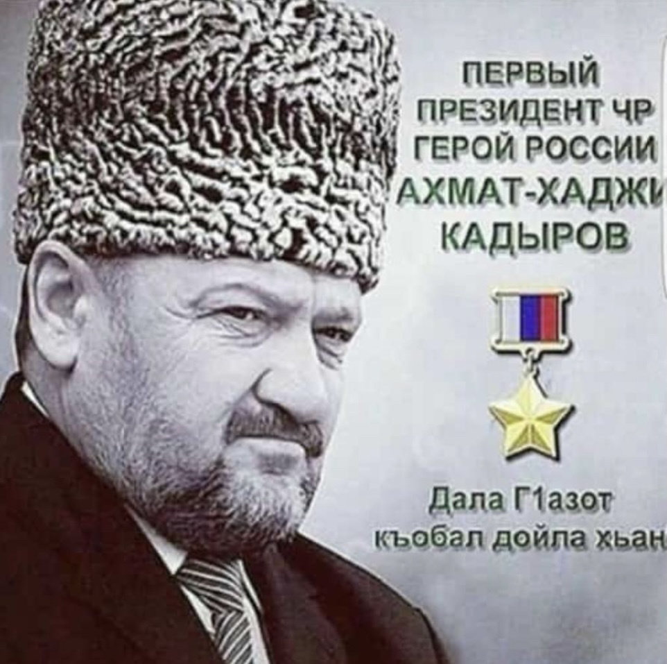 Ахмат-Хаджи Кадыров (ДАЛА г1азот къобалдойла цуьнан) ценой собственной жизни вывел нас на тропу мира и созидания и покинул этот мир непобежденным! Благодаря его героизму мы сейчас живем в мирной и развитой республике, имеем возможность всесторонне развиваться и радоваться каждому дню!