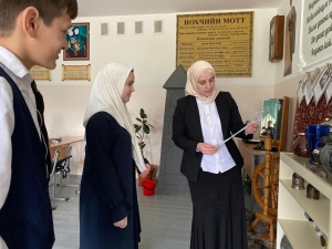 22.11.202422.11.2024 учитель чеченского языка и литературы провела музейный урок с обучающимися 6 класса по теме "Куханная утварь и быт чеченцев". Собравшимся на уроке рассказали о том, что посуда в прошлые века была в основном глиняной. В повседневном быту использовались вначале керамические, затем бронзовые и медные изделия: керамические кувшины, маслобойки, разная посуда. Посуда и утварь чеченцев прошлых веков говорит о тесных экономических и культурных контактах предков вайнахов с русским миром на протяжении многих веков.