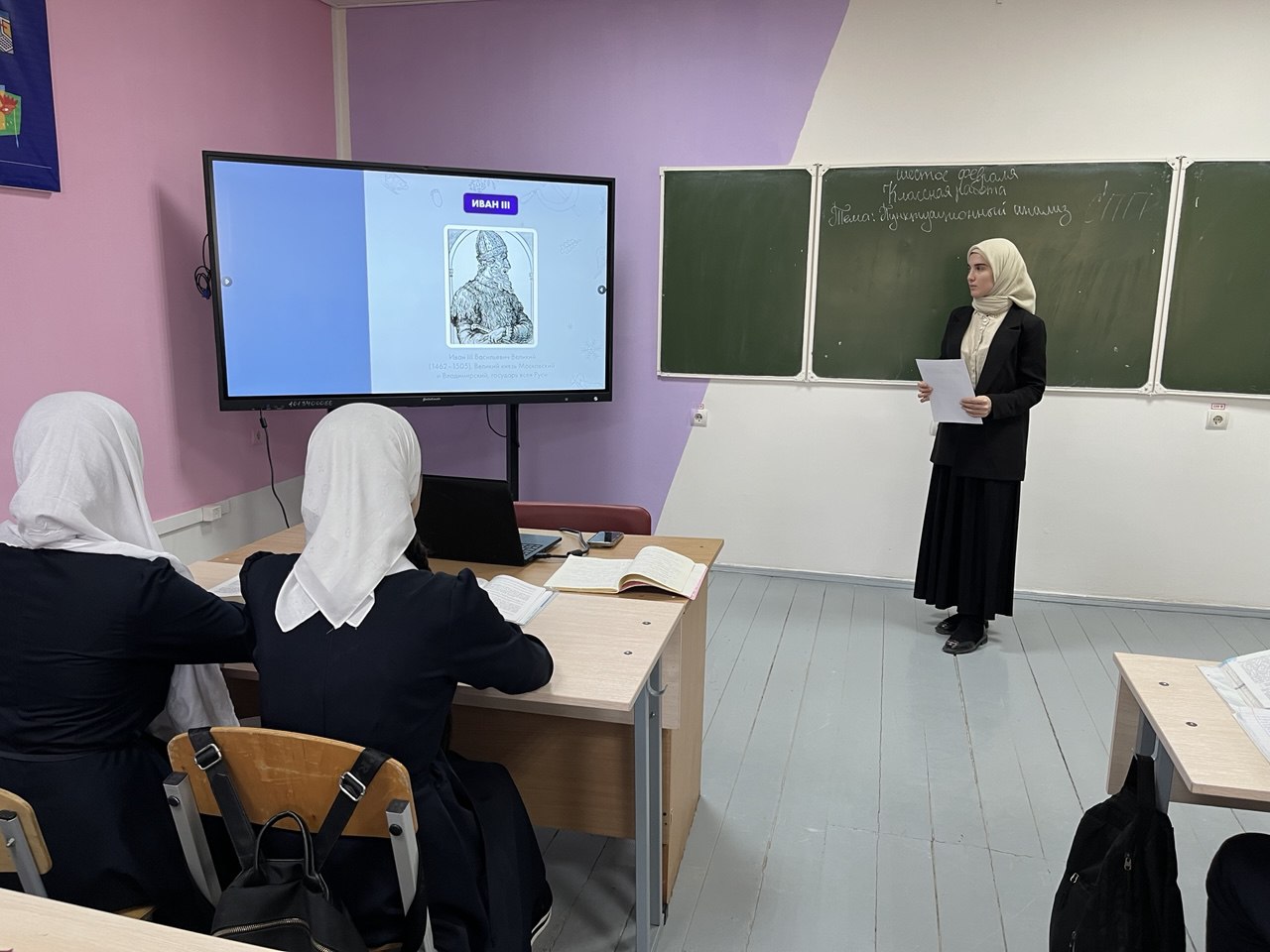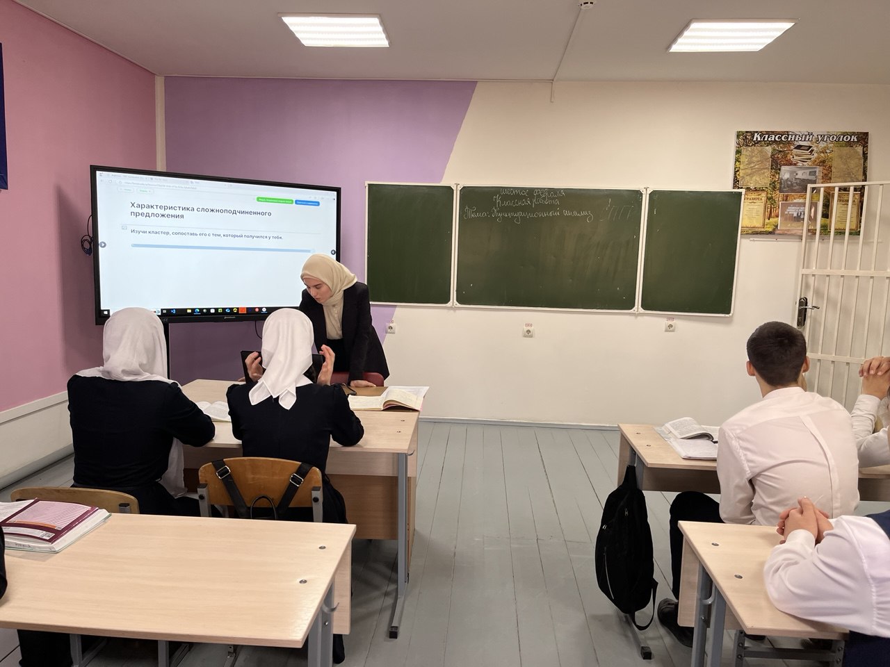 В рамках школьного этапа конкурса "Учитель года-2025" учитель Дельмаханова Т.Т. провела открытый урок русского языка в 9 "Б" классе на тему "Пунктуационный анализ сложноподчинённых предложений" и семинар для педагогов, посвященный педагогическим приемам формирования УУД на уроках.