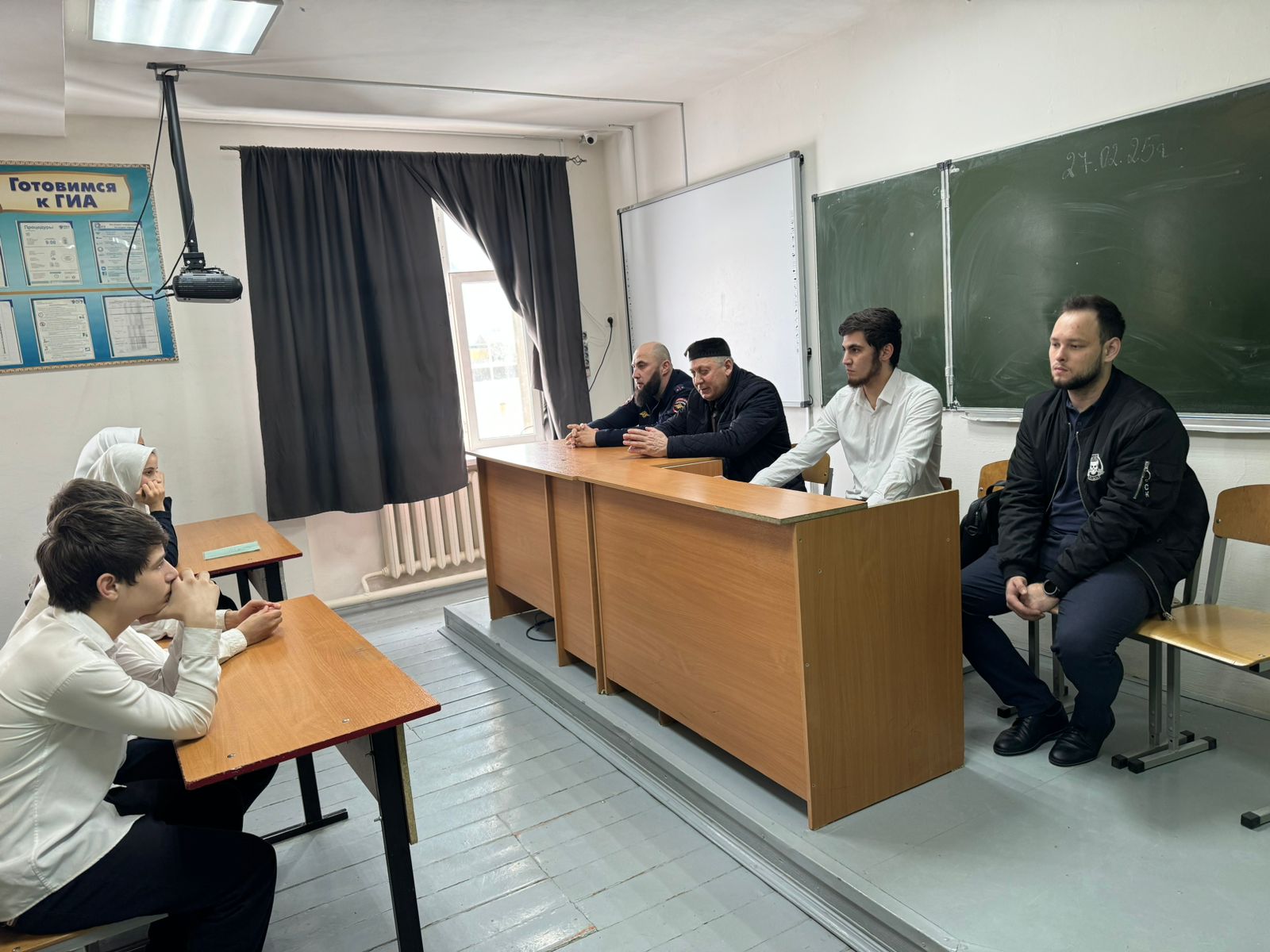 27.02.202527.02.2025 в МБОУ «СОШ№2 с. Катар-Юрт» представители МУ «Отдел образования Ачхой-Мартановского муниципального района» в лице А.З.Джамбулатова и представители правоохранительных органов провели встречу со старшеклассниками по профилактике противодействия терроризму и экстремизму: «Терроризм и экстремизм: сущность и способы противодействия!».