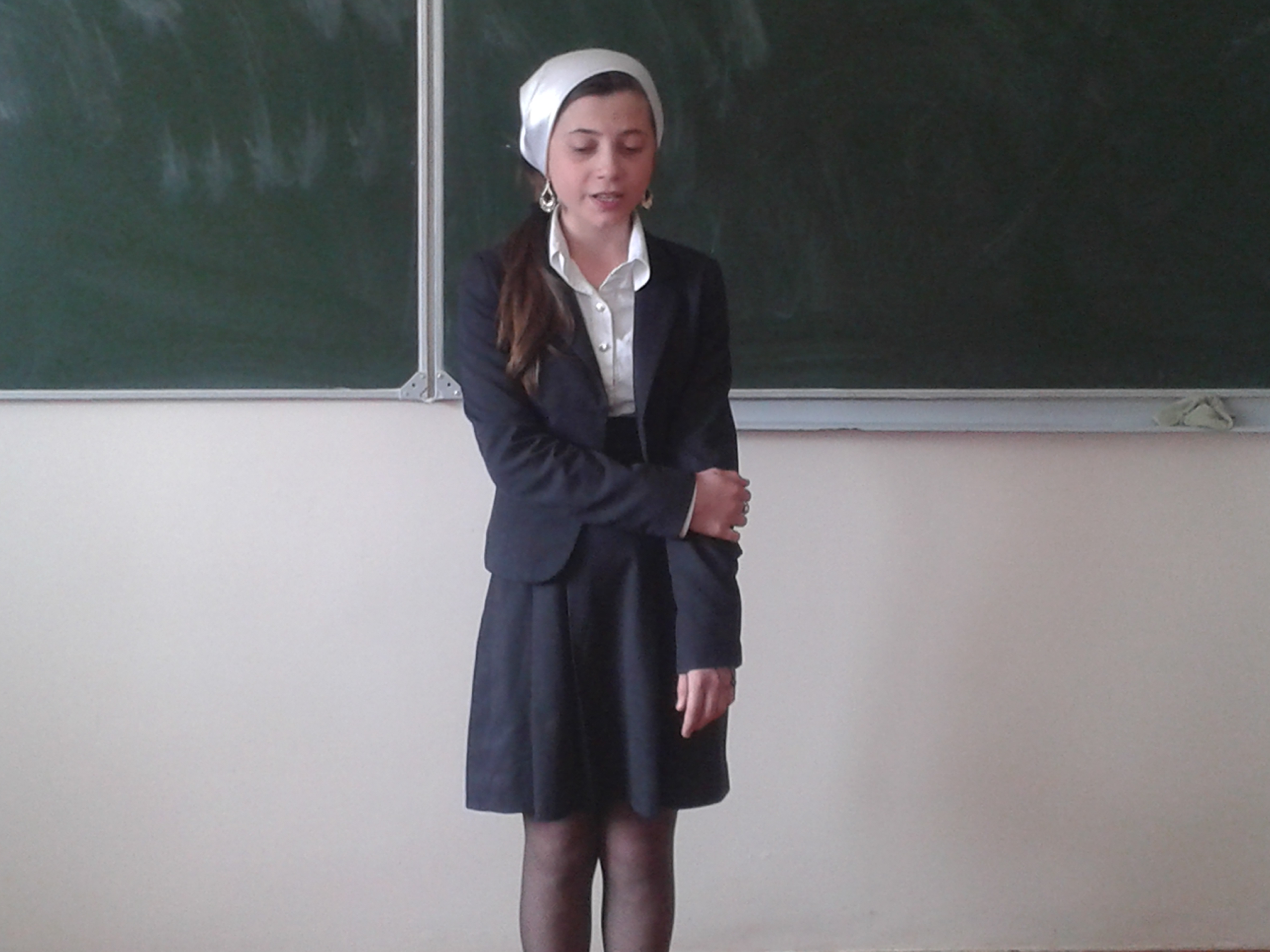 08.04.2015в школе прошел конкурс чтецов, где первое место заняла ученица 8б класса Мукаева Милана - стих. «Нана» и круглый стол среди учащихся 8-9- классов на тему: «1алашбе вайн нохчийн мотт».