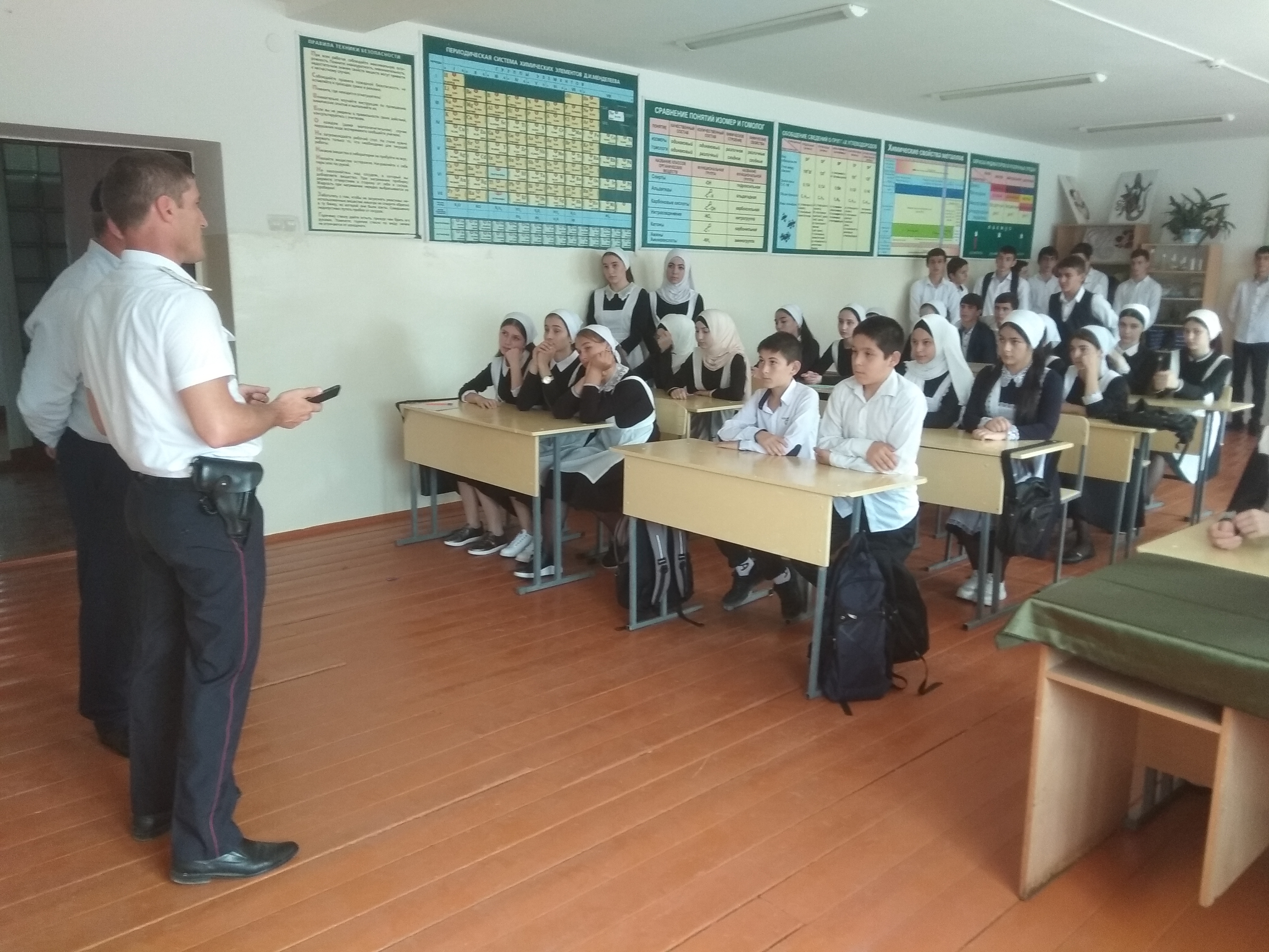 05.09.2018Традиционно в начале учебного года проводятся встречи с работниками ГИБДД. Приглашенный гость инспектор по БДД и ОГИБДД МВД России по Ачхой-Мартановскому муниципальному району старший лейтенант А.В. Ханкаров ознакомил детей со статистикой чрезвычайных ситуаций на дорогах с участием детей. Предупредил о необходимости соблюдения правил безопасности на дорогах. « Многие из вас являются владельцами велосипедов. Вам необходимо быть особенно бдительными на дорогах, не ездить по проезжей части, особенно в темное время суток. На велосипедах и на предметах одежды должны быть отражатели света, чтобы водитель мог вас заметить вас и сбавить скорость»