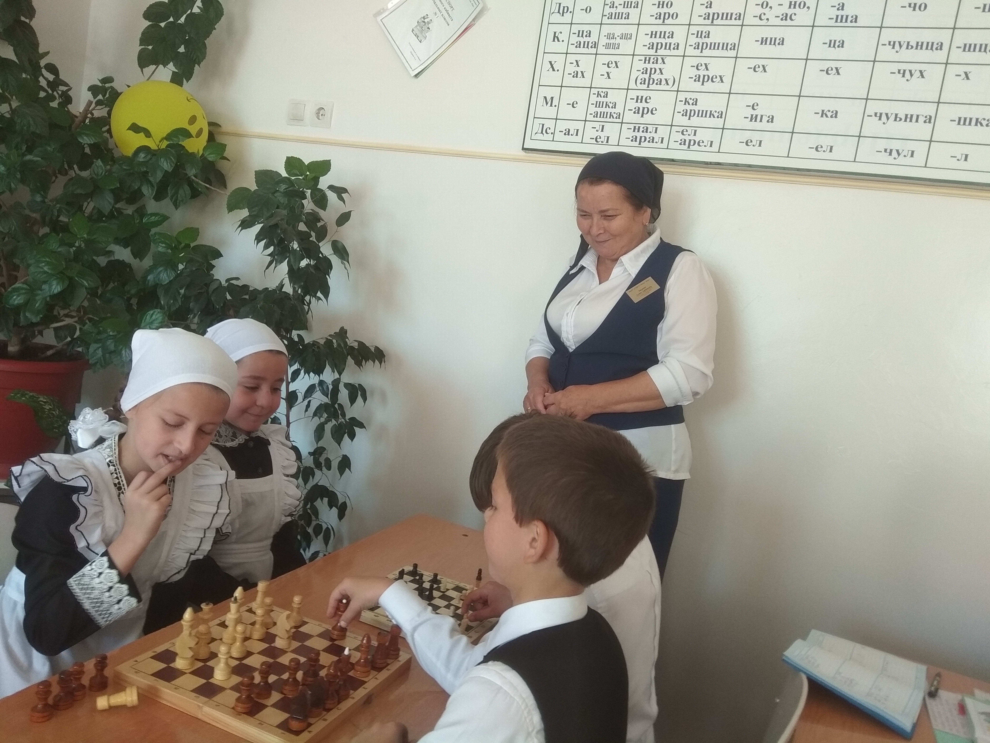 Учащиеся начальных классов нашей школы учатся играть в шахматы.