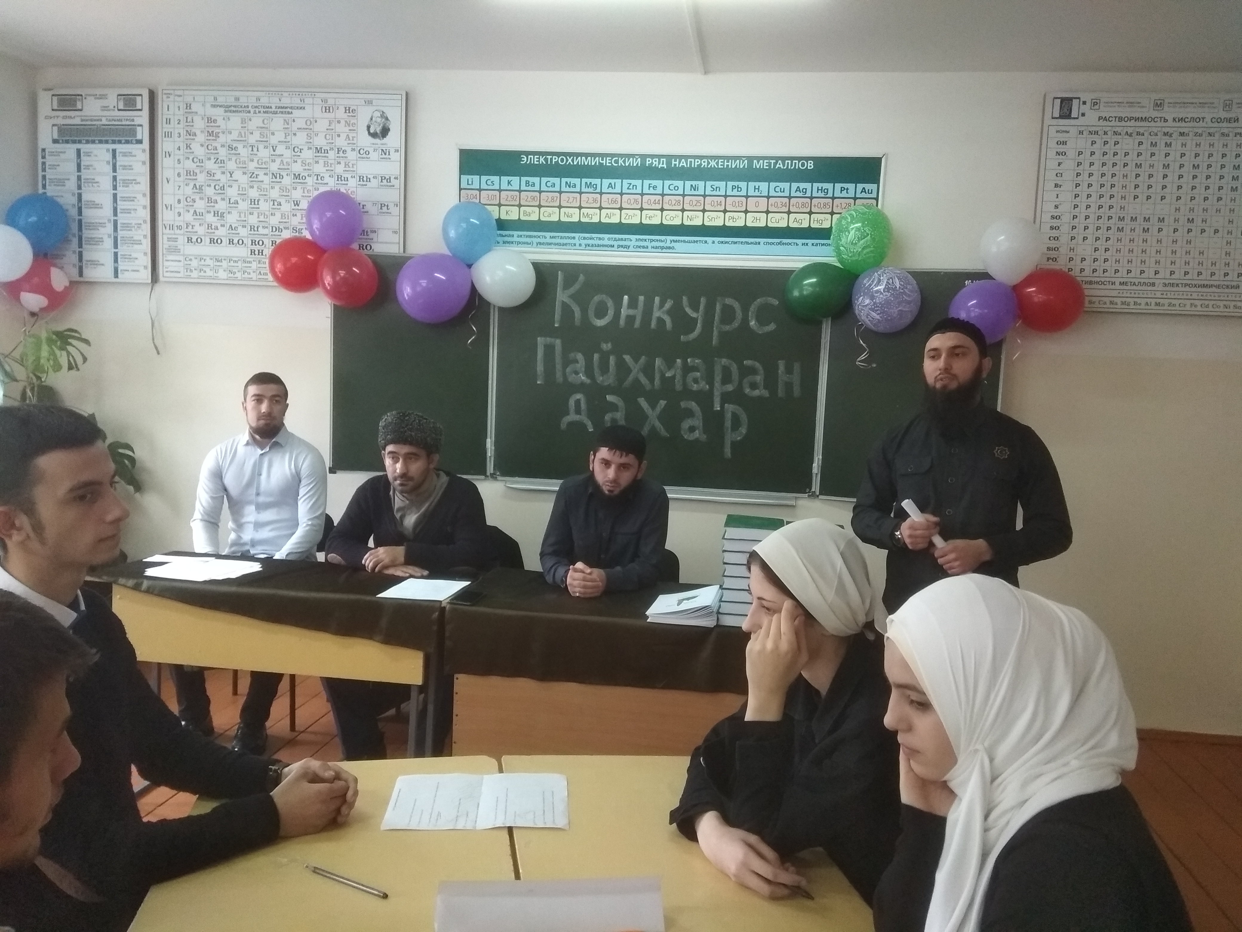 Учащиеся 9-11 классов приняли участие в конкурсе «Пайхмаран дахар», на котором учащиеся показали свои знания о жизни пророка Мухаммада (с.а.с). Победителями в данном конкурсе стала команда 11 класса
