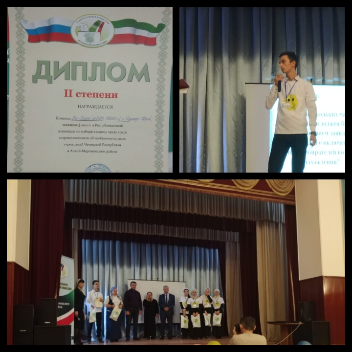 В Республиканской олимпиаде по избирательному праву среди старшеклассников общеобразовательных учреждений Чеченской Республики в Ачхой-Мартановском районе наша команда заняла второе призовое место.