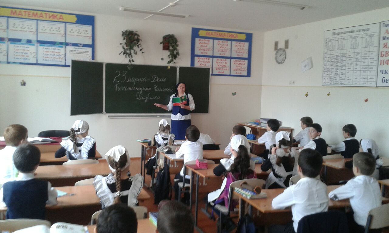23.03.2019В рамках празднования 16 годовщины со дня принятия всенародным голосованием Конституции ЧР и с целью воспитания гражданственности и патриотизма в нашей школе были проведены тематические классные часы в 1-11 классах.