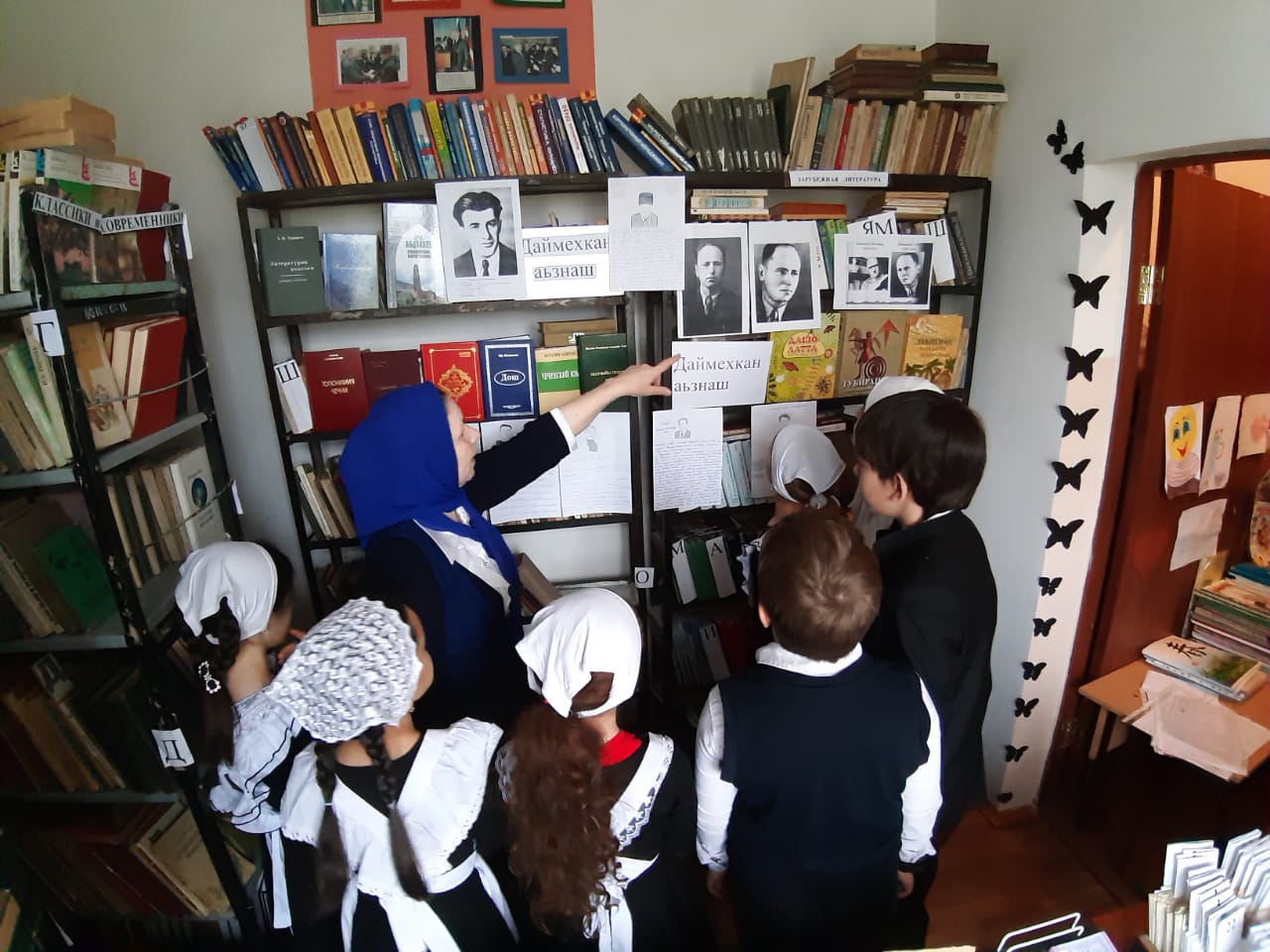 Библиотекарь школы Мукаева Т.У. провела книжную выставку и конкурс чтецов.